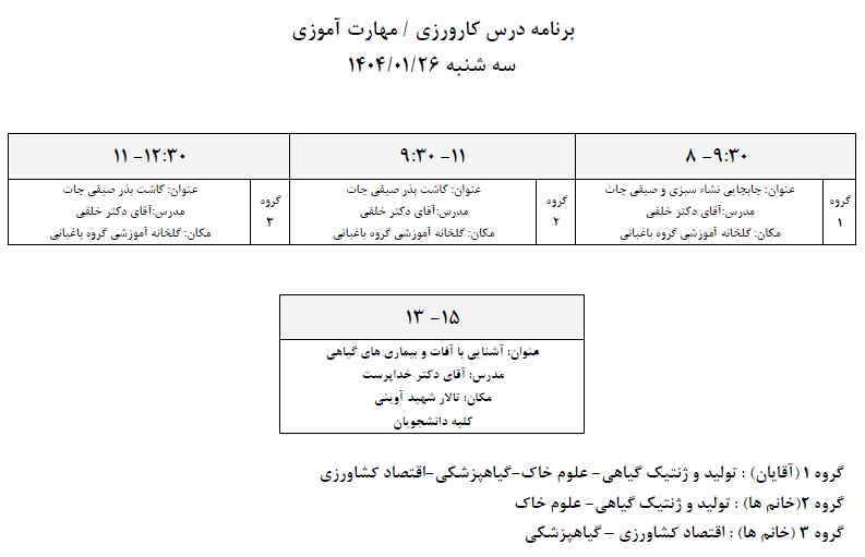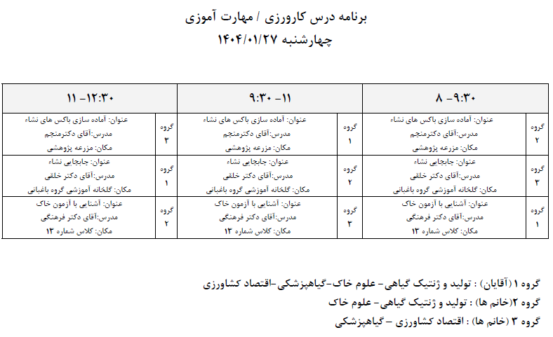 كارورزي/ مهارت آموزي 26 و 27 فروردين